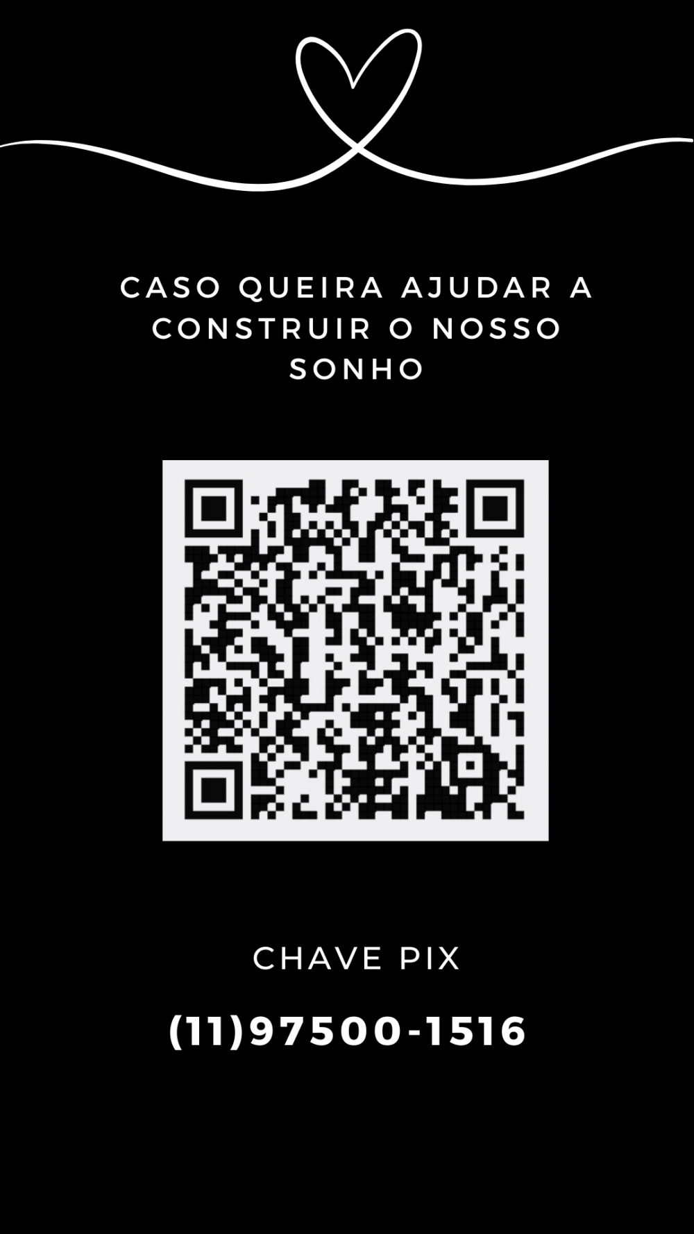 Caso queiram nos presentear, escolha qualquer item da Lista de Casamento, ou diretamente no nosso PIX descrito no menu.